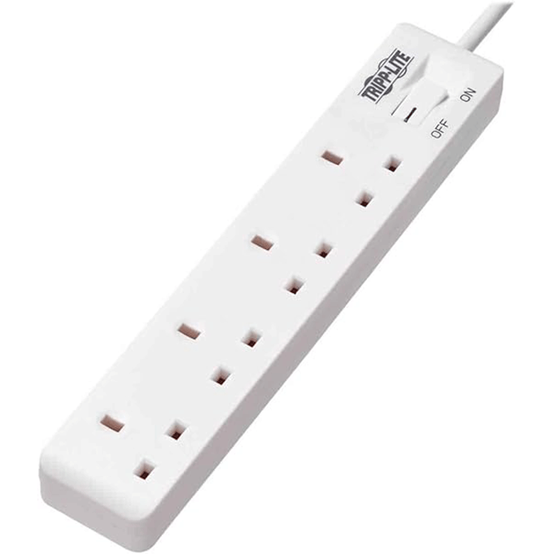 4-Outlet Power Strip – British BS1363A, 220–250V AC, 13A, 1.8m Cord, Fused Plug, White