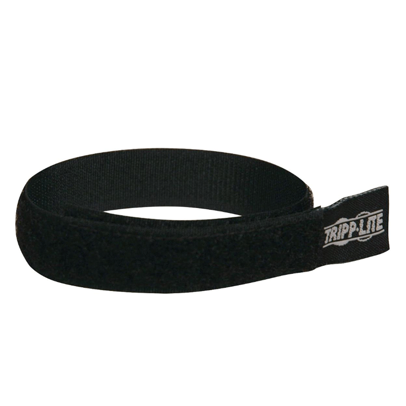 Each tie measures 10 inches long by 5/8 inch wide, making them perfect for managing medium-sized cable bundles such as power cords, networking cables, audio/video wires, and other common electronics. They can comfortably wrap around bundles up to approximately 3 inches in diameter, providing a neat and organized look.