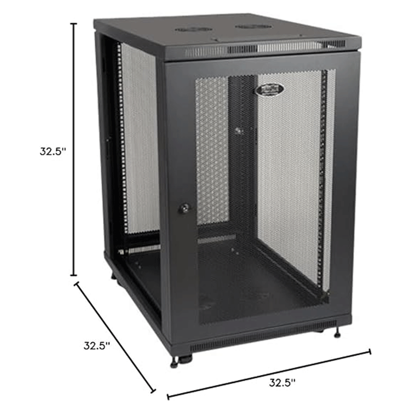SmartRack 18U Mid-Depth Rack Enclosure Cabinet8U with adjustable front and rear vertical rackmount railsDepth of 33″ allow for standard server installationLocking, reversible front/rear doors and locking, removable side panels